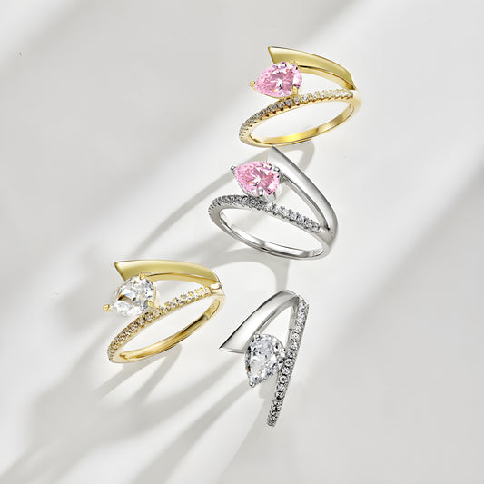 18k Gold Plated Bypass Silver Ring with Cubic Zirconias